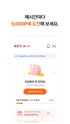 Syrup은 매일 재밌게 포인트를 모아볼 수 있는 앱입니다. 저금통을 두드리면 포인트가 팡팡 쌓이고, 1시간마다 5,000P에 도전할 수 있습니다. Syrup에서는 출석체크부터 PLAY하고 모으기까지 다양하고 재밌게 앱테크를 할 수 있습니다. 지금 바로 시작해보세요.