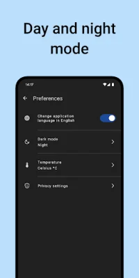 One of the key features of the app is the ability to customize the user experience. This is done through an easy-to-use interface that allows users to choose between displaying temperature in Celsius or Fahrenheit, as well as switching between day and night mode. This allows users to personalize their experience and make the app more user-friendly for their specific needs.