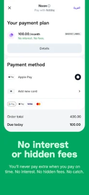 Tabby is a shopping app that allows you to purchase items you love and split the cost into four monthly payments, without any interest, hidden fees, or surprises. Whether you prefer to shop online or in-store, Tabby gives you control over your purchases, financial flexibility, and peace of mind.