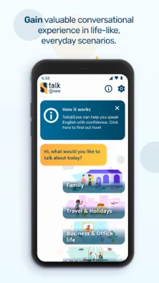 Talk@Ease is an innovative language learning app that focuses on improving your English speaking skills. Unlike other language learning apps, Talk@Ease uses a unique AI talkbot that allows you to practice speaking with native British and American English speakers. With this app, you can chat with the talkbot in various real-life scenarios and receive feedback on your responses, helping you to improve your conversational skills.