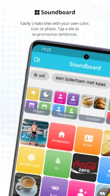 This application is a soundboard that allows users to access preprogrammed sentences and also add their own personalized sentences. Users have the option to choose their favorite color and icon for each tile on the soundboard. Additionally, the app offers the ability to install the Google TTS plugin for access to more languages. This can be done by clicking on the settings icon within the app. It is encouraged for users to be original and SEO oriented when adding their own sentences to the soundboard.