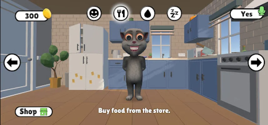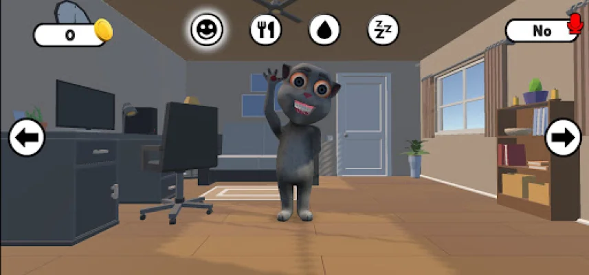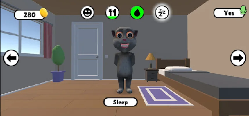 To play, users can interact with the talking cat in each room. They can also use coins to buy food and feed the cat when it is hungry. Keeping the cat clean by bathing it is also important. And when the cat is tired, players can let it sleep.