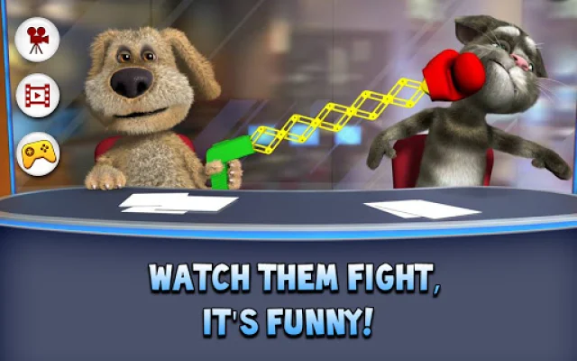 Join Tom and Ben in their TV studio and have a blast! This app allows you to interact with the two characters by talking to them and watching them repeat what you say. You can also poke or swipe the screen to make them fall off their chairs. It's a fun and creative way to express yourself and enjoy some entertainment.