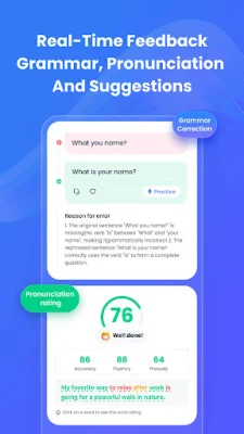 One of the key features of TalkMe is its powerful instant feedback. Users can speak freely without fear of making mistakes or feeling embarrassed, as the AI provides comprehensive feedback on grammar, pronunciation, and even offers rephrasing suggestions for more natural expressions. Additionally, users can learn more useful vocabulary and expressions by using the AI learning feature to translate, explain, and save unfamiliar words or phrases.