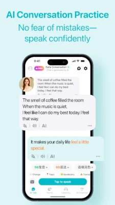One of the unique features of Talksy is its AI conversation practice. This allows you to practice speaking in a natural and conversational manner, as if you were chatting with a friend. The AI technology guides your conversations, corrects your grammar and pronunciation, and suggests natural expressions. This eliminates the fear of making mistakes and awkward silences, making your conversations smoother and more confident.