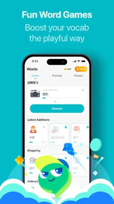 In addition to conversation practice, Talksy also offers gamified vocabulary learning. Through various game-like exercises such as spelling, matching, multiple choice, and fill-in-the-blank, you can make learning new words more fun and engaging. The app also utilizes spaced repetition, which helps words stick better and makes learning more efficient.