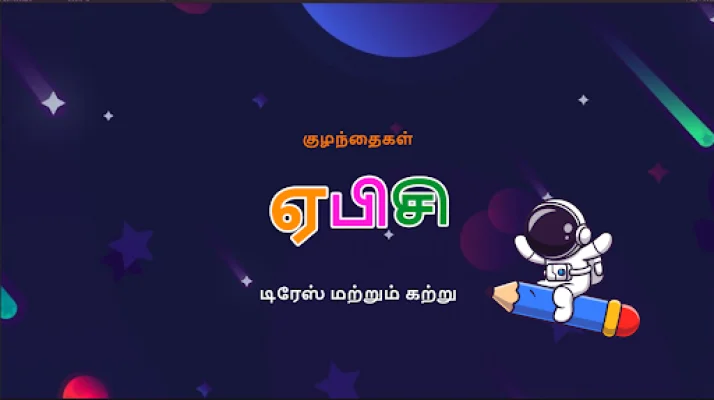 Tamil Alphabet Trace & Learn is a fun and educational game designed for preschool kids over the age of 2. It aims to help children understand and write the Tamil alphabet in a simple and engaging way. The game features an astronaut character and a kid-friendly color palette to make learning more enjoyable for young children.