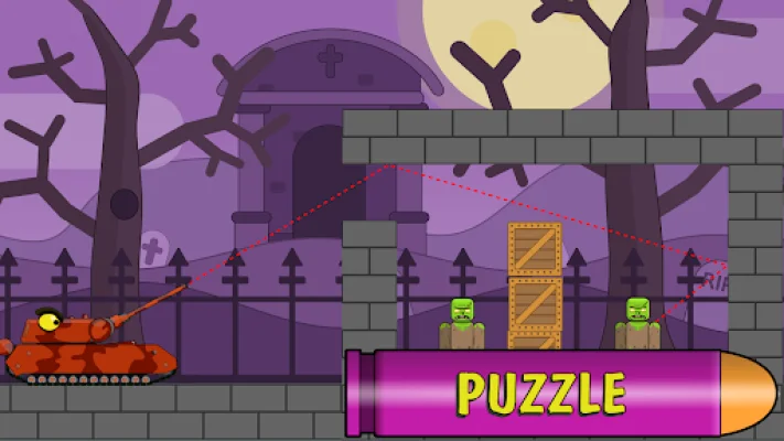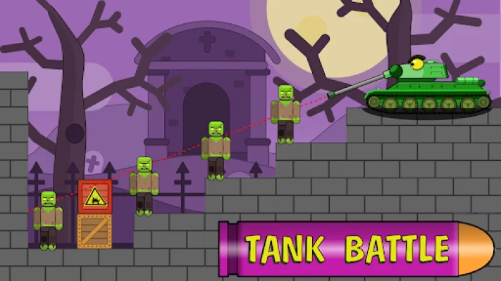 Use your brain and bullet ricochets to protect the world from a zombie invasion in TANK BATTLE. This is a real war against bosses and their minions, where you will strategically use cannons and well-aimed shots to defeat them. The battle will take place in different locations, including a cemetery, black forest, and city.
