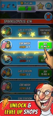 Tap Empire is a unique idle clicker game that allows players to build and upgrade shops as they progress through levels filled with challenges and inventions. The game takes players on a fantastic adventure where they must defeat the evil empire of Mr. Bossworth, a greedy business tycoon. Along the way, players can unlock new worlds, invent gadgets, and research upgrades to help them amass wealth and become a successful billionaire.