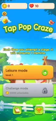 Get ready for the ultimate tapping experience with Tap Pop Craze! This addictive game offers simple gameplay that will keep you entertained for hours. With multiple game modes to challenge your skills, you'll be popping colorful bubbles in no time! To play, simply tap on groups of same-colored bubbles to pop them and clear the board. Earn high scores to unlock bonus coins and special achievements as you progress. The satisfying popping sounds and visual effects will make every tap even more enjoyable. Tap Pop Craze offers two exciting modes: Casual Mode, which is free and perfect for quick sessions, and Challenge Mode, which can be unlocked with coins and offers more difficult levels. You can also earn gold coins by completing levels and daily tasks, and use them to unlock special achievements with unique rewards. In order to play each level, you will need 1 energy. Don't worry though, as energy automatically refills over time. And if you need an instant refill, you can use coins to do so. Download Tap Pop Craze now and join this addictive tapping adventure for free! This game is perfect for tap game enthusiasts, puzzle lovers looking for quick fun, players who enjoy satisfying sounds and effects, and anyone in need of stress-free entertainment. So why wait? Start popping today and see if you can achieve the highest scores!