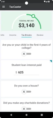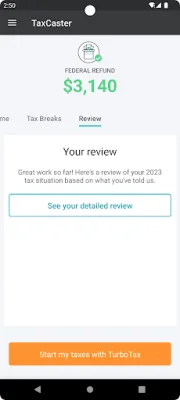 One of the key features of TaxCaster is its availability in Spanish. If the user's device language is set to Spanish, the app will automatically switch to Spanish. However, users also have the option to change the language in the app settings. Additionally, TaxCaster is part of a family of apps that includes TurboTax and Mint. This allows for easy navigation between the different apps through a navigation drawer.