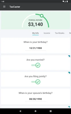 The TaxCaster app is a useful tool for individuals who want to get a quick estimate of their taxes before preparing their tax return. It is constantly updated to reflect the latest tax laws, ensuring an accurate refund estimate. With this app, users can easily plan ahead for major life events such as marriage, having a baby, or buying a home. By adjusting their paycheck withholdings, they can either take home more money or pay less tax in the future.