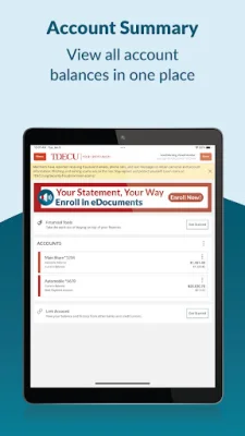 Our mobile application offers a convenient and efficient way to manage your finances. With just a few taps, you can enroll in TDECU Digital Banking and gain access to a variety of features. These include checking your account balances and history, paying bills, and even depositing checks (with some restrictions). You can also easily transfer funds between your accounts, track your spending, and create budgets to help you stay on top of your finances.