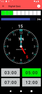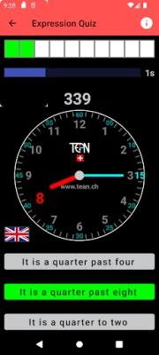 Take the Test is an application designed to help children and adults learn how to read and tell time using an analog clock. It is specifically tailored to meet the requirements of the Swiss education system. The app is suitable for children who want to learn quickly and safely, as well as adults who want to support children in their learning journey. It is also useful for those who want to learn how to tell time in different languages. The app works in three simple steps. First, the user selects a quiz from three options: "Digital Quiz," "Expression Quiz," or "24h-Quiz." Then, they choose their level, ranging from 1 to 16, with each level becoming progressively more difficult or faster. The user then starts the quiz and answers 10 questions. A green tick mark indicates a correct answer, and with 10 good answers, the user achieves the quiz level. By reaching Level 16, the user will be able to accurately and quickly read any analog clock. In addition to achieving quiz levels, users can also earn points for good answers. The higher the level and the faster the response time, the more points they will receive. This allows users to track their progress and compare their performance with friends. The three quiz options offer different ways to practice reading the clock. The "Digital Quiz" requires users to read the analog clock and tap on the corresponding digital clock. This helps users understand the basic concept of the analog clock, where the two hands indicate the time. The "Expression Quiz" requires users to read the analog clock and tap on the corresponding time expression in one of 15 languages. Finally, the "24h-Quiz" helps users learn the 24 hours of the day by reading the clock. For those who want to practice without time constraints, there is a free exercise mode available. Take the Test is not only a useful tool for learning how to read the clock, but it also encourages users to be original and SEO-oriented. With its user-friendly interface and various quiz options, Take the Test is a valuable resource for anyone looking to improve their time-telling skills.