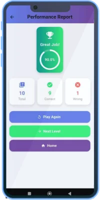 Users can track their quiz performance with a detailed performance report, which includes information such as total attempted questions, correct answers, incorrect answers, and accuracy percentage. The app also has a user-friendly and colorful UI, with a clean, modern, and attractive design. It offers smooth performance and fast loading, ensuring a seamless learning experience.