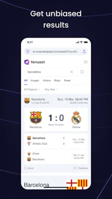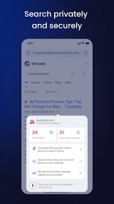 One of the key features of Tempest Browser is its built-in private search, which integrates Tempest Search directly into the browser. This ensures that trackers and search history are automatically eliminated, providing users with the most private and relevant results as soon as they go online. This not only protects user privacy, but also saves time by eliminating the need for separate search engines.