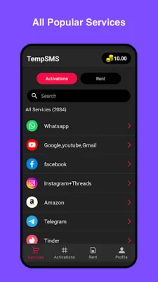 Take control of your digital identity with TempSMS. This independent application allows you to verify accounts safely and anonymously, keeping your real number in your own hands. Please note that TempSMS is not affiliated with, sponsored by, or endorsed by popular third-party providers such as WhatsApp, Instagram, Telegram, Google Gmail, and others. All service names, trademarks, logos, and brands are used for identification purposes only and remain the property of their respective owners. With TempSMS, you can enjoy clear, fair, and transparent pay-per-activation pricing and have peace of mind knowing that your personal information is safe and secure.