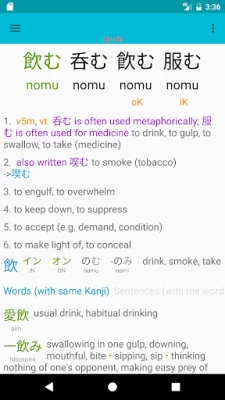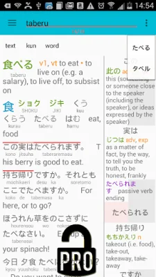 One of the unique features of this app is the ability to customize the rendering for Japanese, including options for displaying kanji, kana, romaji, furigana, and pronunciation. Users can also prioritize the languages for the display of meanings and senses.