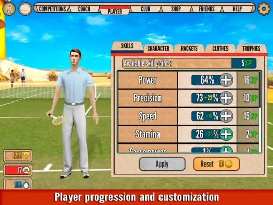 The app's key features include precise swipe and touch controls, lag-free asynchronous multiplayer action in league, tournament, and practice matches, and the opportunity to earn trophies in major tournaments inspired by real-life Grand Slam tournaments. Users can also train their AI character to play just like them and choose from seven different tennis player character types. Additionally, they can customize and develop their in-game character into an ultimate tennis pro.