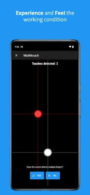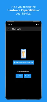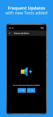We are constantly working on updates for our app, so you can expect frequent improvements and new features. Our app also follows the latest Material design guidelines, providing an attractive and user-friendly interface. Each device test is accompanied by clear descriptions, making it easy for users to understand the results and verify the working condition of their phone.