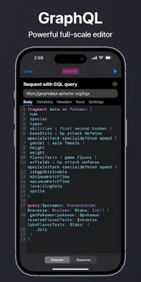 This application is a powerful tool for testing and managing HTTP requests. It supports all types of requests, including GET, POST, PUT, PATCH, DELETE, HEAD, OPTIONS, COPY, LINK, UNLINK, PURGE, LOCK, UNLOCK, PROPFIND, and VIEW. The main feature of this application is its GraphQL editor, which allows for full-scale experience with body editing, queries, mutations, subscriptions, and syntax support. It also includes a variables editor, documentation explorer, and request settings and metadata.