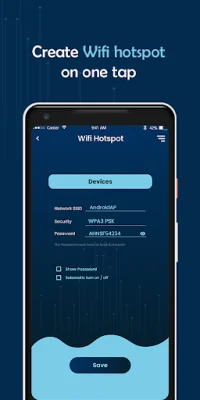 In addition to its hotspot capabilities, Tether Wifi Hotspot also includes a data usage manager to help you monitor your mobile data usage. You can also check your real-time internet speed in the status bar, giving you a better understanding of your connection. To use the app, simply open it on your phone, choose a name and password for your hotspot, and press the create button to enable it. With Tether Wifi Hotspot, you can stay connected wherever you go.