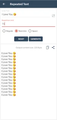 The app also offers the ability to share repeated text on social media platforms, making it easy for users to quickly post their message without having to manually type it multiple times. Users can also copy their repeated text and paste it into their social media posts, saving them even more time and effort.