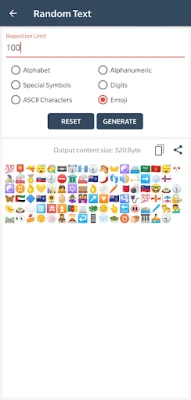 In addition to the repeat function, the app also allows users to generate random characters using either the default alphabet or ASCII characters. This can be useful for creating unique and eye-catching posts. Users also have the option to modify the output, giving them even more control over their repeated text.