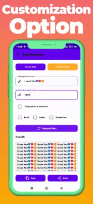 Text Repeater also makes it easy to share your repeated text on social media. You can simply copy the results and share them with your friends and followers. The app also offers flexible options such as adding spaces, new lines, or separators to your repeated text. And for those who like to add a touch of creativity, Text Repeater supports emojis, allowing you to insert them within your repeated text for fun and unique outputs.