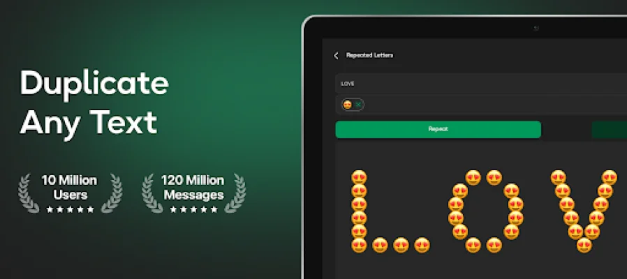 Text Repeater is a user-friendly application that makes it easy to repeat text. With this app, you can repeat any text as many times as you want, giving you endless possibilities for duplication and customization. You can quickly copy the repeated text to your clipboard with just one click, making it convenient to use the text as needed. Additionally, the app offers seamless sharing options, allowing you to easily share the repeated text. Along with text repetition, the app also lets you generate random text or numbers and flip the text for added versatility and creativity.