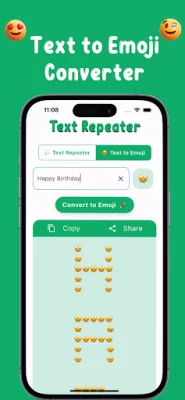 Text Repeater - Emoji Repeater is a versatile and user-friendly app that allows you to enhance your messaging experience in various ways. With its intuitive features, you can easily duplicate your text, convert it into vibrant emojis, and add a unique flair to your messages with custom emoji repeater. This app seamlessly integrates with WhatsApp, making it convenient to share your creations directly on the messaging platform. You can also copy and share your texts and emojis on other platforms, spreading joy and creativity with every share.