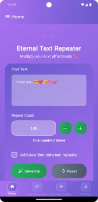 Key features include an advanced text repeater that allows you to quickly and effortlessly duplicate any message to make your words stand out. This is perfect for emphasizing important thoughts and creating an impact with stylish and eye-catching repetition. The love card generator lets you design personalized cards with just a few taps, choosing from a variety of romantic templates, fonts, and colors. Whether it's for a special occasion or just to express your love, our generator makes it easy to create a card that will touch hearts.