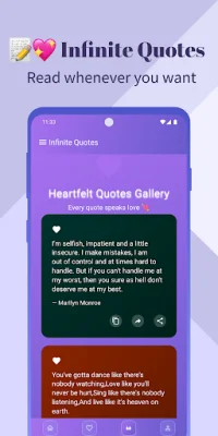 Our app is designed for those who value the power of words and the beauty of love. It offers a variety of features to help you express your feelings, send thoughtful messages, and unleash your creativity with text. The user-friendly design allows you to easily create stunning love cards and dynamic text repeaters that amplify your heartfelt sentiments. With an extensive library of infinite quotes, you can find daily inspiration and share wisdom with your loved ones.