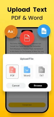 To convert text to handwriting, enter the text in the input box or upload a file from your device storage. Click on the "Convert Text" button and the app will transform your digital text into a handwriting style. You can customize the font, color, and page style before downloading the output.