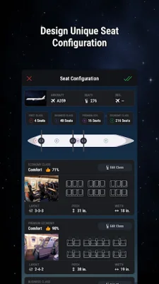 Not all economy class seats are the same, and every aircraft has its own unique configuration. With our app, you can design a one-of-a-kind cabin configuration for each of your aircraft. Choose the seat product, layout, and pitch for each class, from a dense 3-4-3 Airbus A350 to an all-business Boeing 787.