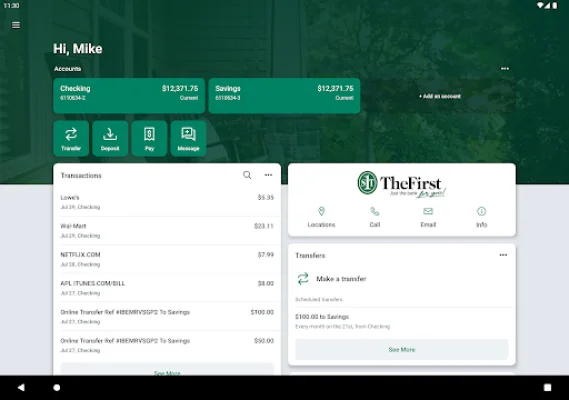 In addition to managing your finances, the app also offers a convenient way to contact The First Bank. You can easily locate ATMs or branches and contact customer service directly from the app. This makes it easier to get in touch with the bank and resolve any issues or inquiries you may have.
