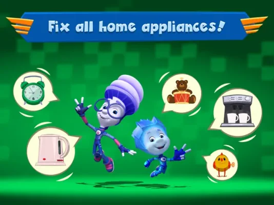 But who will pilot the helicopter? Don't worry, all of The Fixies are capable of flying it. Choose your favorite character to play for free or watch ads to unlock them.