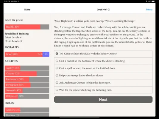The Lost Heir 2 is an interactive fantasy novel written by Mike Walter. It is the second installment in a trilogy and contains a whopping 250,000 words. The unique aspect of this game is that the story is entirely controlled by the player's choices. There are no graphics or sound effects, allowing the player's imagination to run wild and create their own visualizations of the story.