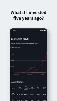 The app also offers a backtesting engine, allowing users to simulate their portfolio's performance with past data before making investment decisions. This feature can help users make more informed choices and compare their portfolio's performance to the S&P 500 market index.