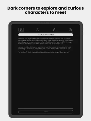 The gameplay of The Salt Keep is text-based, with the player navigating and making choices through button inputs. The player can guide Doyle through the village and the towering keep, collect items and equip gear to improve his abilities, and interact with NPCs to progress through the story. The game also includes percentage-based challenges, experience points, and leveling up. Despite the presence of choices and risks, there is no chance of death or dead-ends, ensuring that the story always moves forward.
