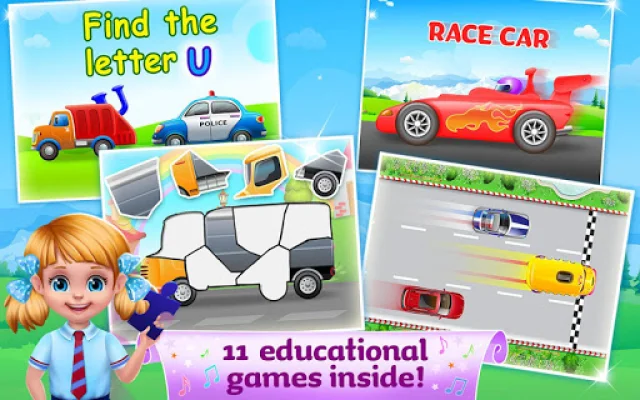 For puzzle lovers, there are 12 unique vehicle puzzles to solve, and a memory matching game where players can match pairs of cars to learn their sounds and names.