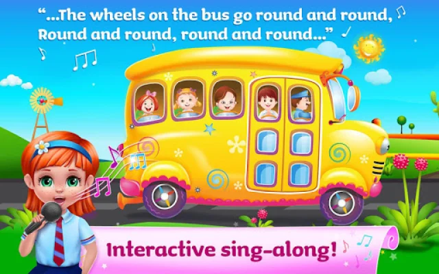 This application offers a fun and interactive way for children to learn and play with the classic song "Wheels on the Bus." Through various activities, children can sing along to an animated version of the song, color a coloring page featuring different transportation vehicles, and even play their own version of the song on a horn piano.