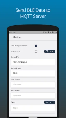 In addition to scanning and logging, the app also has the ability to read stored data from Thingsup BLE Sensor Beacons. This allows users to access previously recorded data and use it for their own purposes. The app also has the capability to send data to MQTT servers, making it easier for developers to integrate their data with other systems. Users can also customize the MQTT topic and data, allowing for original and SEO-oriented content.