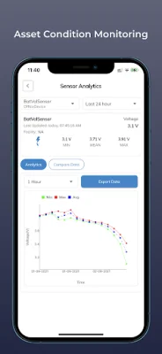 The app also offers sensor data visualization using charts. This feature allows users to view their sensor data in a visually appealing and easy-to-understand format. The charts can help users identify patterns and trends in their sensor data, making it a useful tool for monitoring and analyzing environmental conditions.