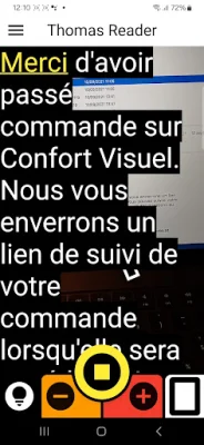 Grâce à ses fonctionnalités, THOMAS READER offre un maximum de confort à ses utilisateurs. En utilisant les deux modes de lecture, il est possible de lire différents types de textes avec une grande facilité. De plus, l'application est entièrement personnalisable pour s'adapter aux préférences de chacun. Ainsi, elle peut être utilisée par un large public, qu'il s'agisse de personnes malvoyantes, déficientes visuelles, dyslexiques ou souffrant de troubles d'apprentissage de lecture.
