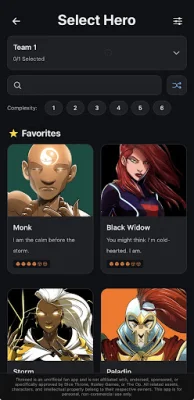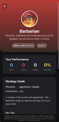 The app includes all Season 1 & 2 characters, such as Barbarian, Moon Elf, Pyromancer, and more. Each character is accompanied by stunning artwork and themed UI elements, enhancing the overall gaming experience.