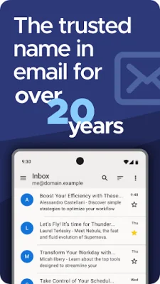 Thunderbird has been a trusted name in email for over 20 years and is now available on Android. It is fully funded by voluntary contributions from our users and is made by a team that values efficiency. We want you to spend minimal time using the app while getting maximum results. Our app has also been translated into over 20 languages and is supported by MZLA Technologies Corporation, a subsidiary of the Mozilla Foundation.