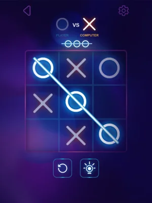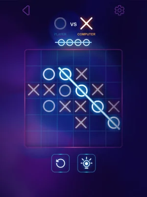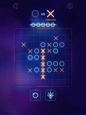 The game features a stunning user interface with cool neon glow effects that add to the overall experience. It offers various difficulty levels, ranging from 3x3 to 11x11 grids, providing a challenge for players of all skill levels. You can choose to play against the computer or challenge a friend in a multiplayer game, making it a versatile option for both solo and social play.