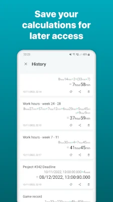 In addition to basic calculations, the app also supports more advanced operations like finding the percentage of a given time. This can be useful for tasks such as calculating the percentage of time spent on a particular activity. The app also allows users to calculate time between two dates, making it easier to plan and manage schedules.