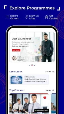 For those looking to cultivate excellence, Executive Education offers a range of certifications, diplomas, and post-graduate degrees from globally recognized top-tier institutes such as IIMs and IITs. Our advanced tech platform allows for expert-led live interactive learning, perfect for professionals aiming to learn and grow and achieve success in today's ever-changing world.
